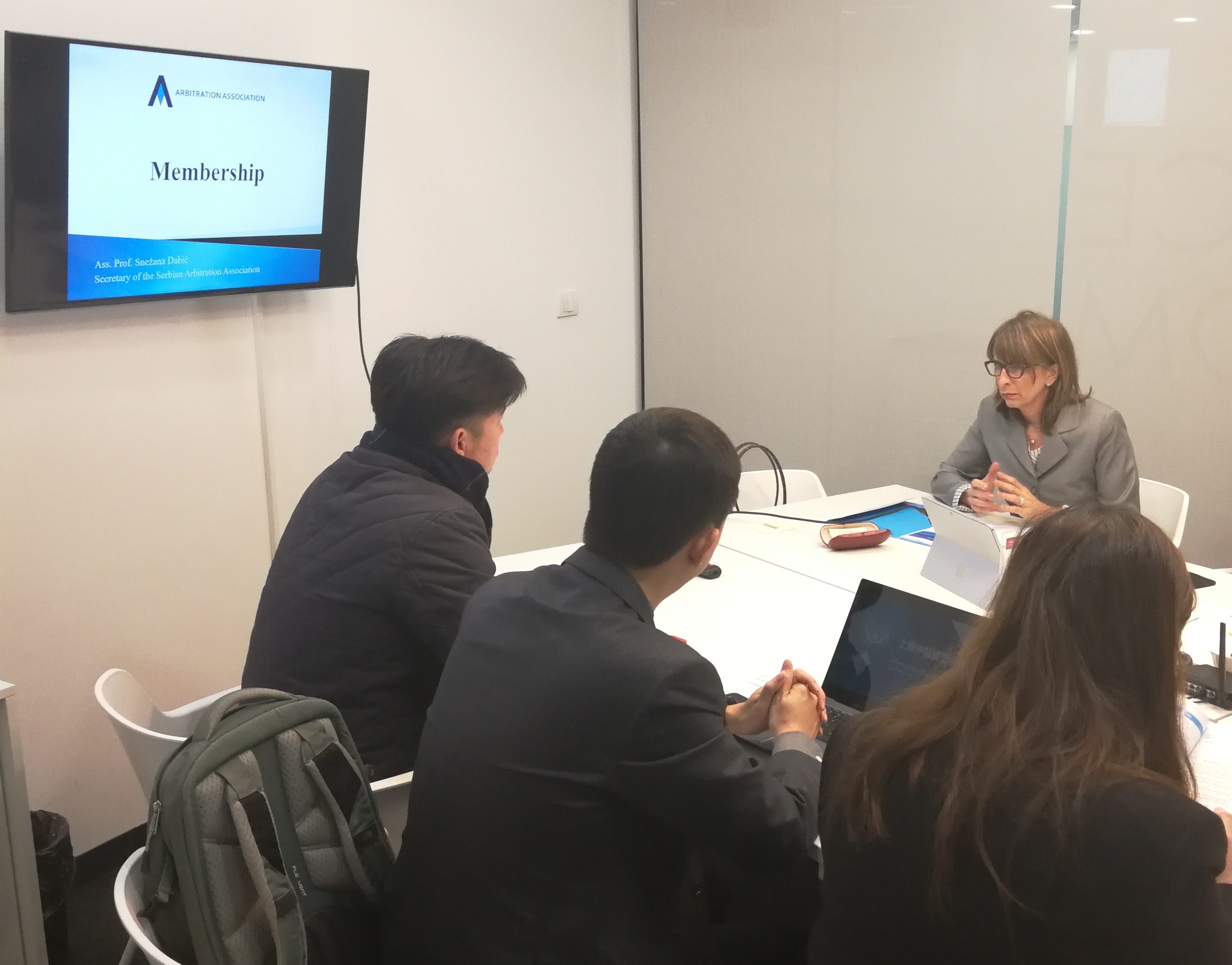 On Thursday, 28 November, the Arbitration Association and the Belgrade Arbitration Center met with guests from China: Mr Gong Jun, Deputy Director of Arbitration Department 3 of Shanghai Arbitration Commmision, Ms Wu Jinxi, Secretary of the Filing Department of the Shanghai Arbitration Commission, and Mr Lu Shenglai, Secretary of the Shanghai Arbitration Commission. The Shanghai Arbitration Commission was founded in 1995 and today administeres approximately 4000 cases per year, including 230 international cases. The guests outlined the possibilities for cooperation in the dispute resolution, considering in particular the Chinese initiative „One Belt One Road“ that covers Serbia amongst other counties. The Arbitration Association was represented by Ms Milena Đorđević, member of the Board and Ms Snežana Dabić, Secretary, while Belgrade Arbitration Center was represented by Ms Maja Stanivuković and Mr Miloš Živković, members of the Board, Mr Predrag Spasić, Secretary and Ms Tijana Lalić as arbitrator and member of Arbitration Association.